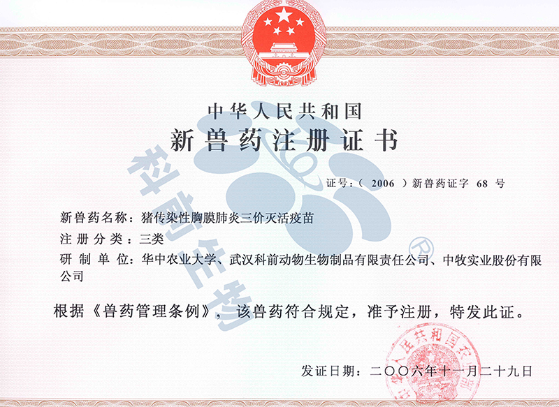 2006年新獸藥證書