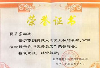 張玉東是全國第6557位、河南省第622位、鄭州市第236位造血干細胞志愿捐獻者。他的愛心舉動令人十分感動,刷爆親友和同事的“朋友圈”,鄭州日報、鄭州晚報等當?shù)囟嗉颐襟w也紛紛報道。